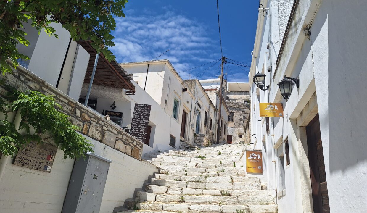Apiranthos, 10 kilometers away, is a mountain village. Its inhabitants, descendants of the Cretans, speak a language other than the modern Greek you can hear in the rest of the island. The narrow marble paved streets, the shops and the art galleries located at heart of the village will have you fall in love!