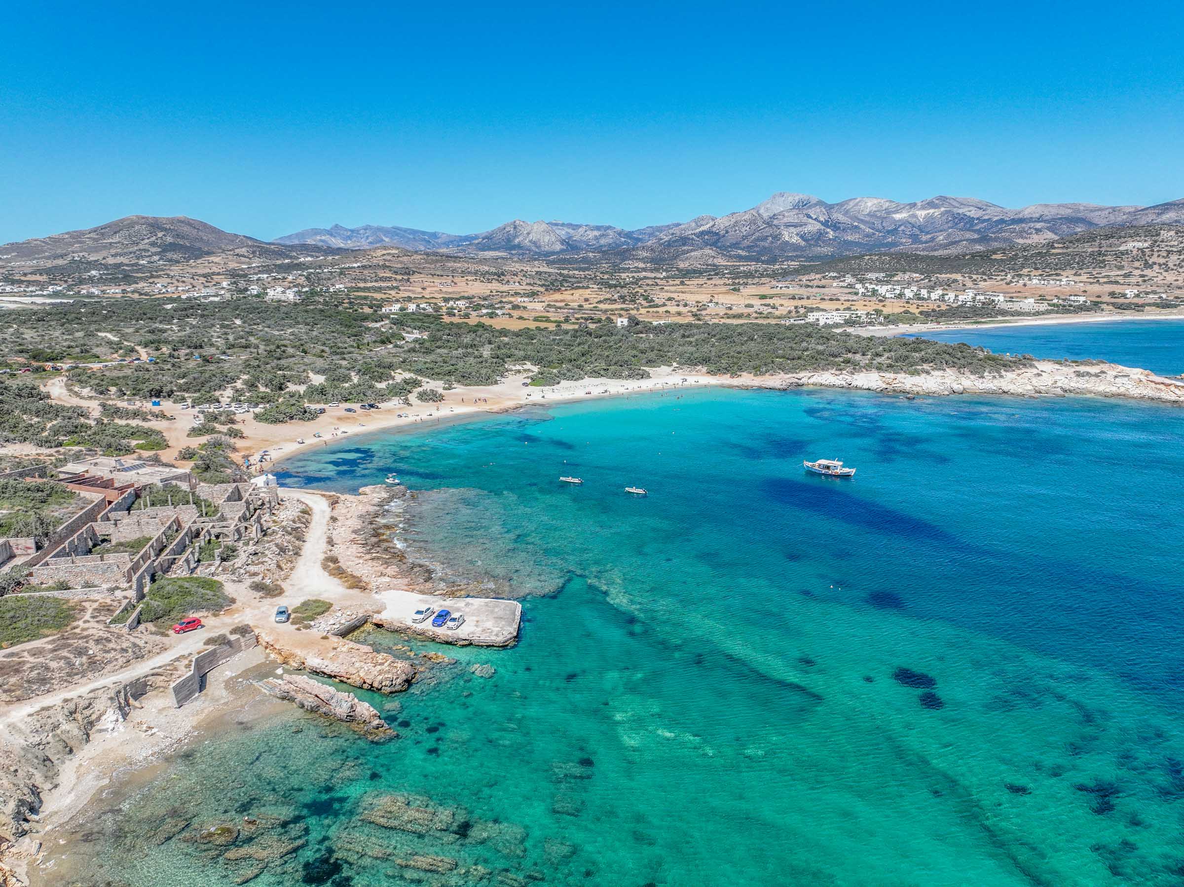 On the west coast towards the south, about 30 minutes by car from Chora, after Mikri Vigla you can reach some beautiful beaches, perfect for those who love peace and silence and for those looking for places with few tourists!