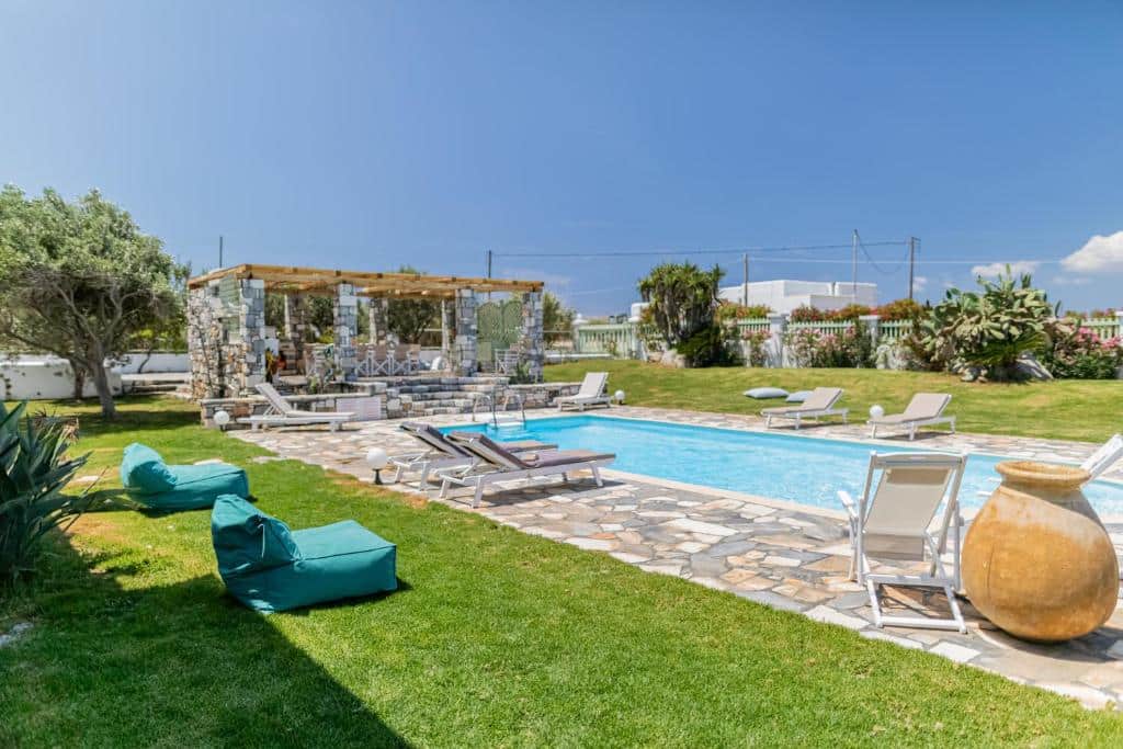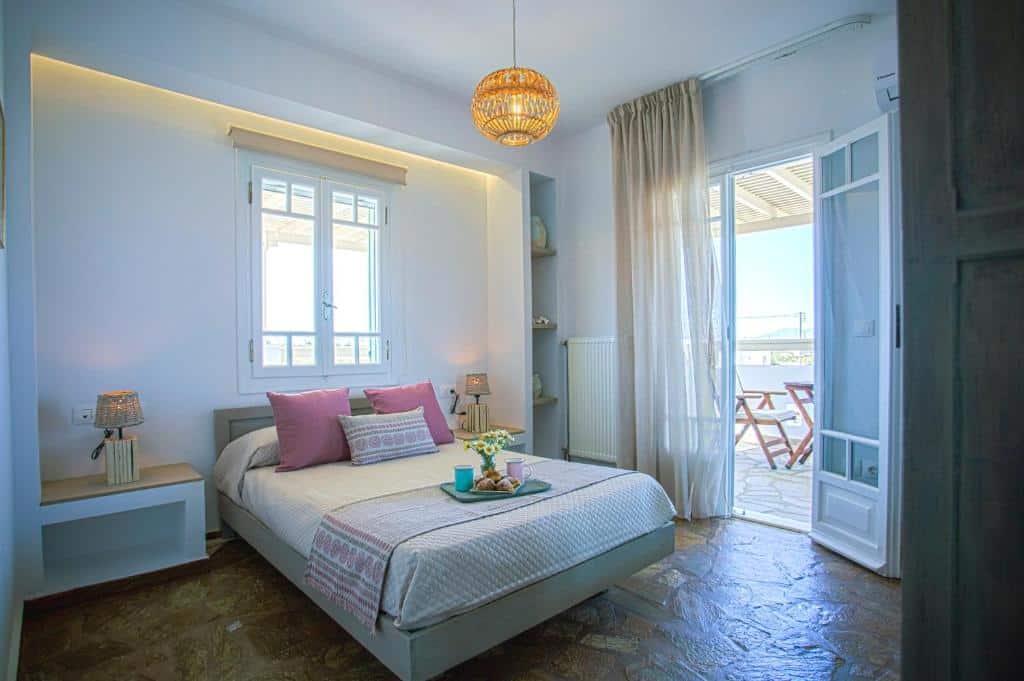 This villa is located on the main street that connect Chora with Agia Anna, so you will need a car to reach restaurants, supermarkets and beach bars.