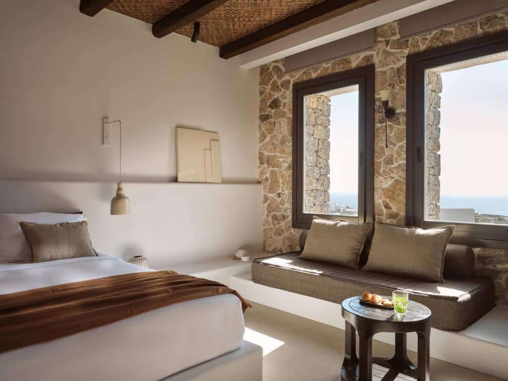 Questo splendido hotel a 5 stelle offre magnifiche suite, alcune delle quali con piscina privata e una vista mozzafiato sul mare. L’hotel sorge su una collina che domina la baia di Elia, vicino alla splendida spiaggia. A breve distanza si trova il tradizionale villaggio di Ano Mera, dove potrete visitare il monastero del XVI secolo! Nel villaggio troverete taverne greche tradizionali!
