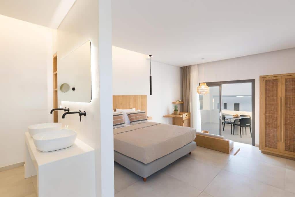 This 33 m² Suite has one double bed and one sofa bed. There is also a beautiful bathroom with a shower and has a nice balcony with a sea view.