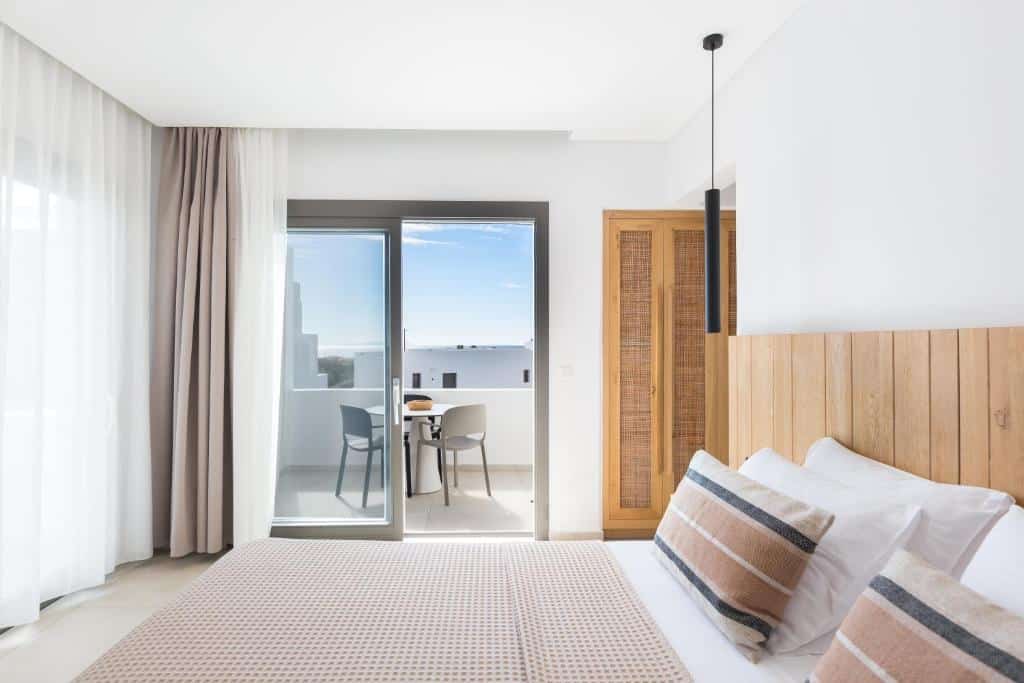This 32 m² Suite has one double bed and one sofa bed. There is also a beautiful bathroom with a shower and has a nice balcony with a partial sea view.