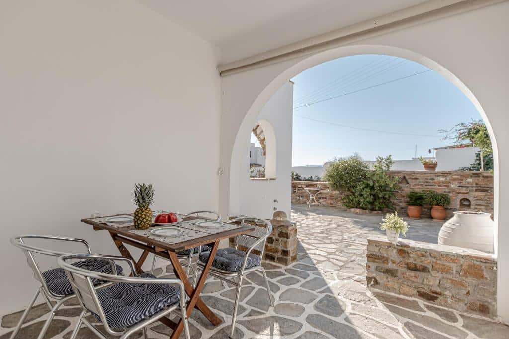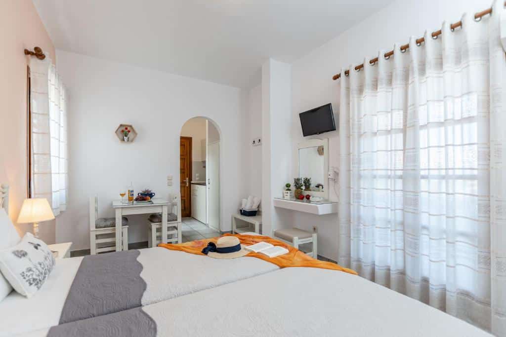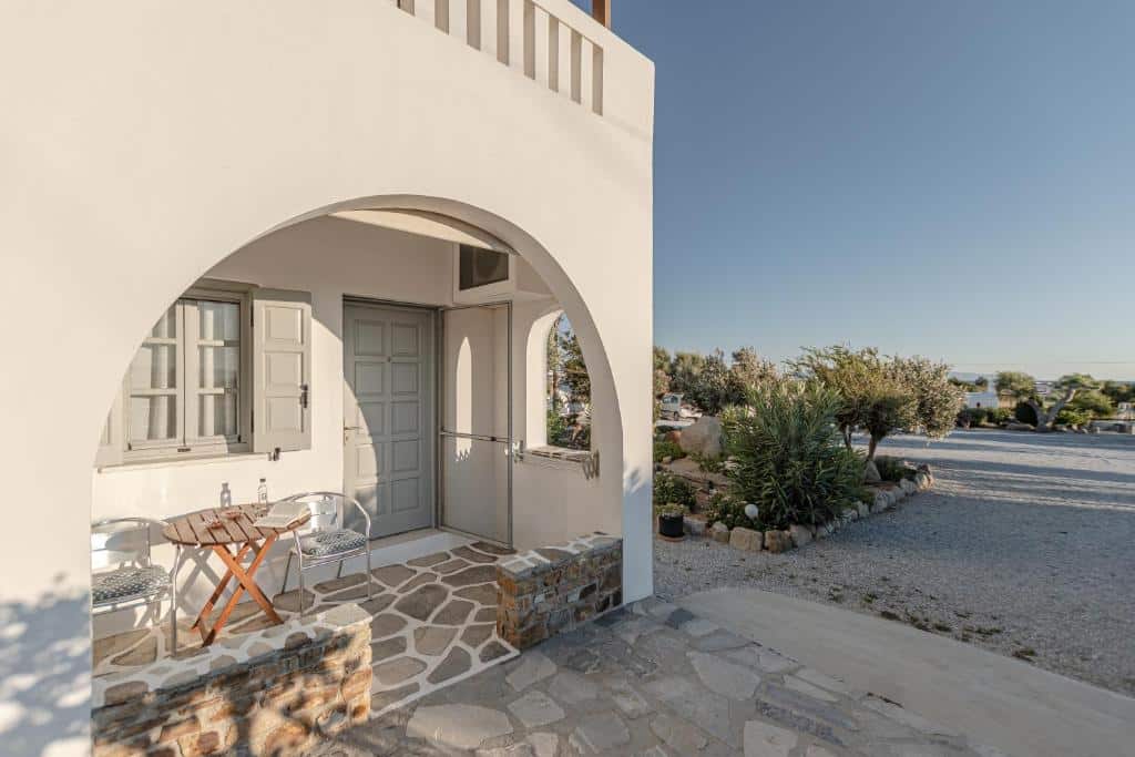 “Very good location, very convenient for the most beautiful beaches and very quiet and not far from Chora. Quiet location with a beautiful sea view. Daily cleaning, very attentive and kind staff. Added value, the sea view terrace with stunning sunsets! The staff was very polite and friendly. The owner and his beautiful family are very helpful and kind! I will definitely come back.”